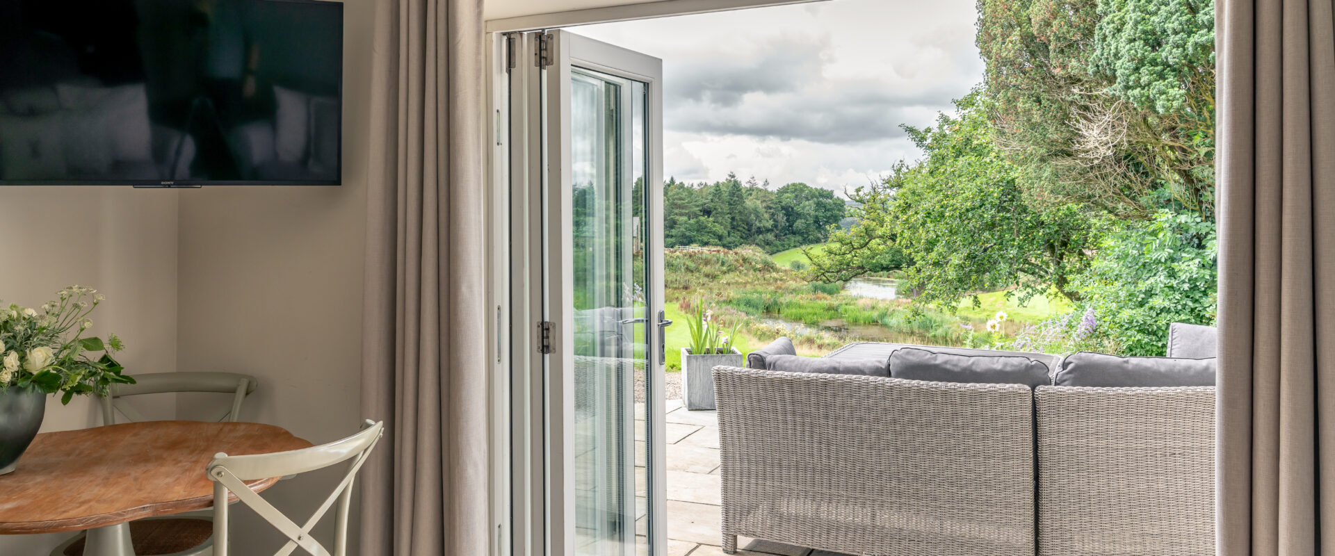 The Lodge boasts large open plan kitchen and living area with bi-fold doors allows you to enjoy the beautiful scenery, whatever the weather. A king-sized bedroom, utility room and pantry complete downstairs.