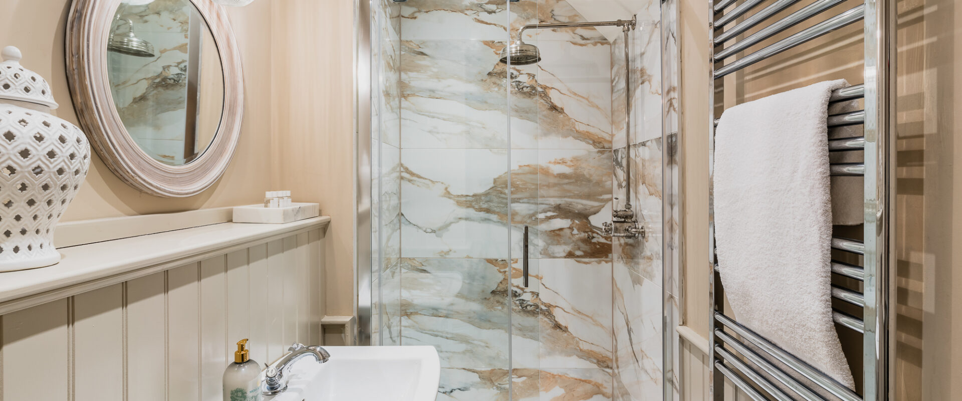 Upstairs, discover the Lodgeโs master bedroom with a large en-suite bathroom, walk in shower and antique his and herโs sinks. Across the landing you will find another large king-sized bedroom and further shower room.