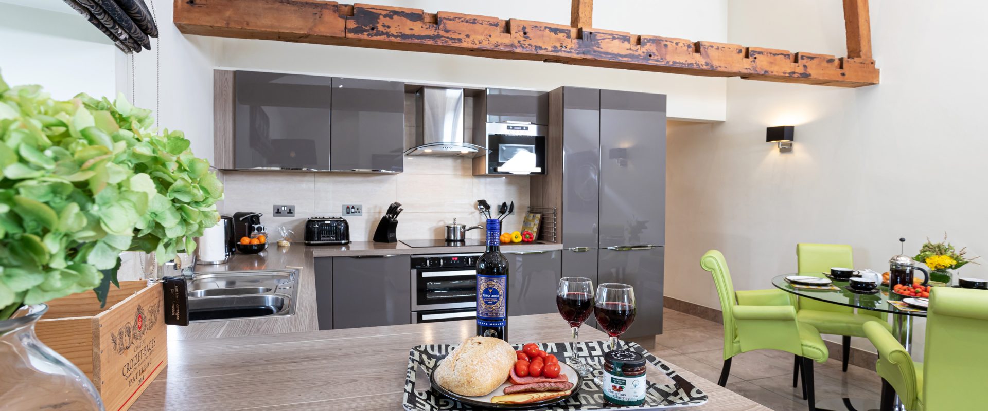 | The timeless panoramic location is home to this immaculately restored historic barn. Original oak beams unobtrusively oversee the inspired contemporary design. Attention to detail rules. We loved the inviting light-filled open plan living/kitchen area (featuring underfloor heating and all mod cons.) The large bedrooms are no less impressive with sumptuously comfy King-sized beds and fine cotton sheets. In the large ultra-modern, en-suit bathrooms with shower/ bath, soft warm fluffy towels are at the ready. What's not to like? |