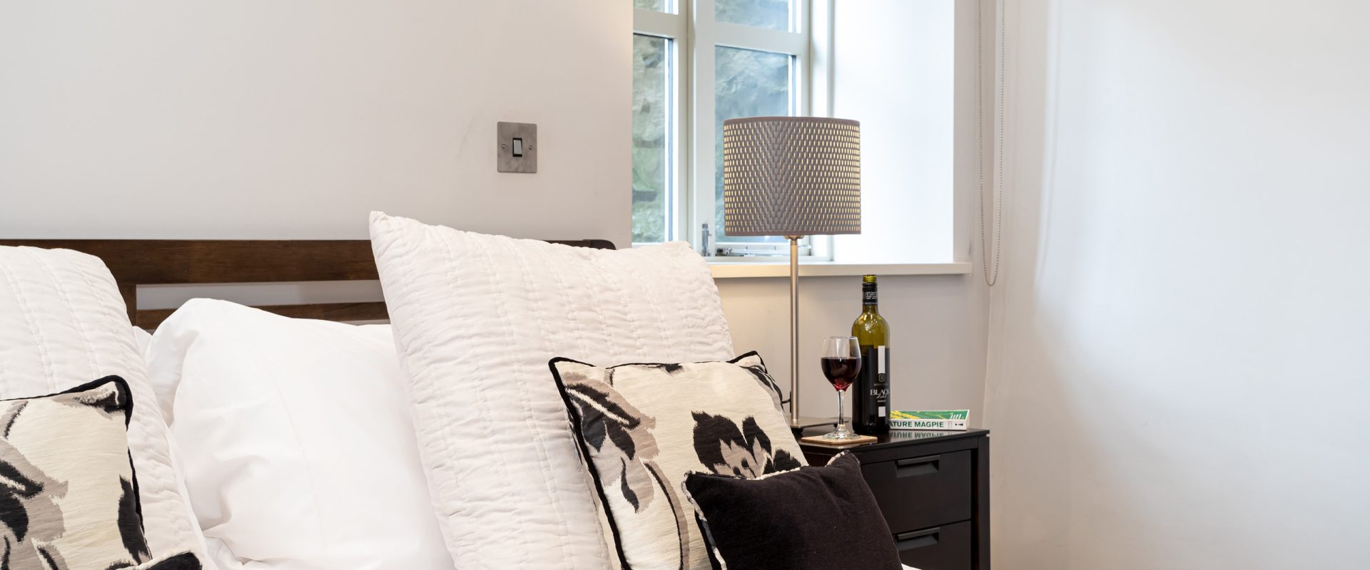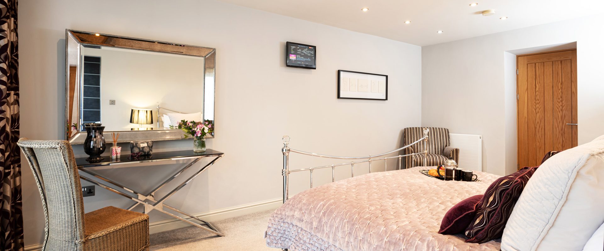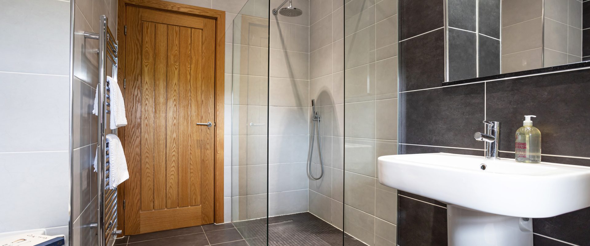 The 5-star cottage contains two super-king sized bedroom suites, each with en-suite wet room facilities. Both wet rooms have huge walk-in showers, luxurious deep baths and contemporary designer fittings. Fluffy white robes are provided for your comfort, as well as linen and towels, and each bedroom has a TV. The first of the bedrooms is on the ground floor for easy access.