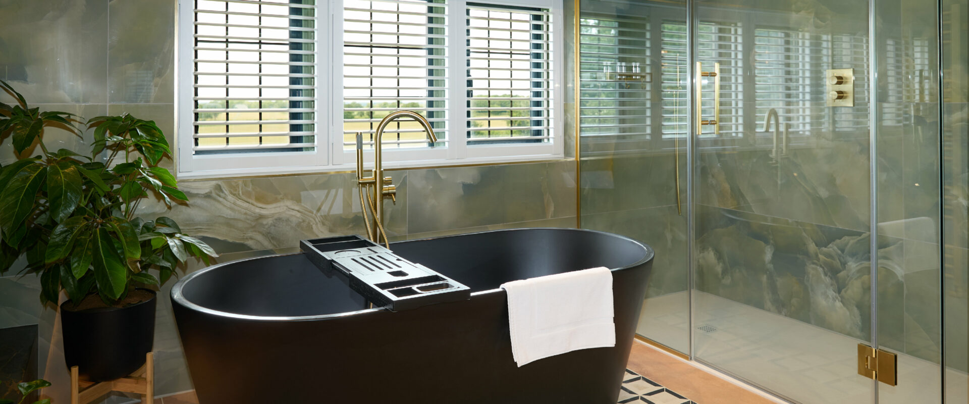 • Luxurious bathroom with walk-in shower and freestanding bath