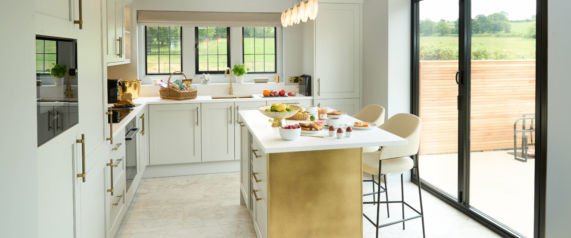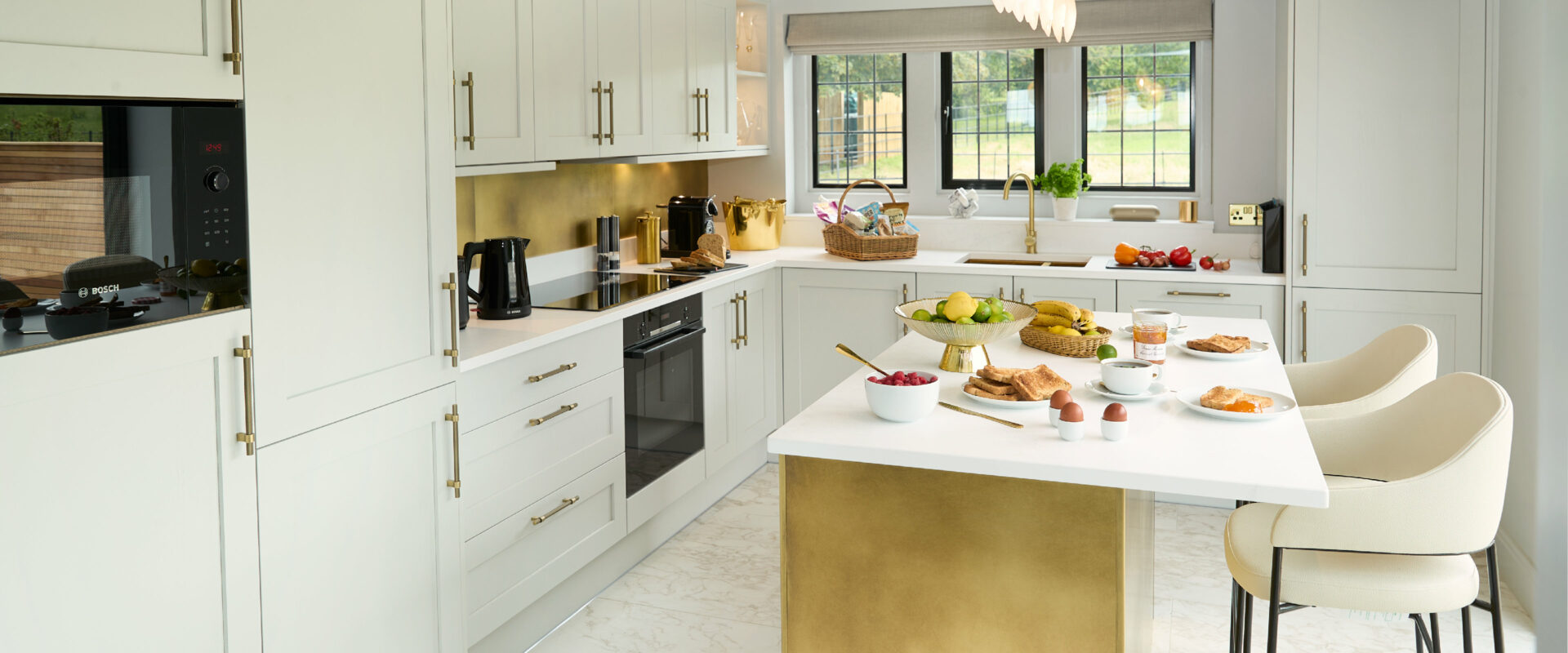 • Stylish kitchen with gold-leaf island and bi-fold doors