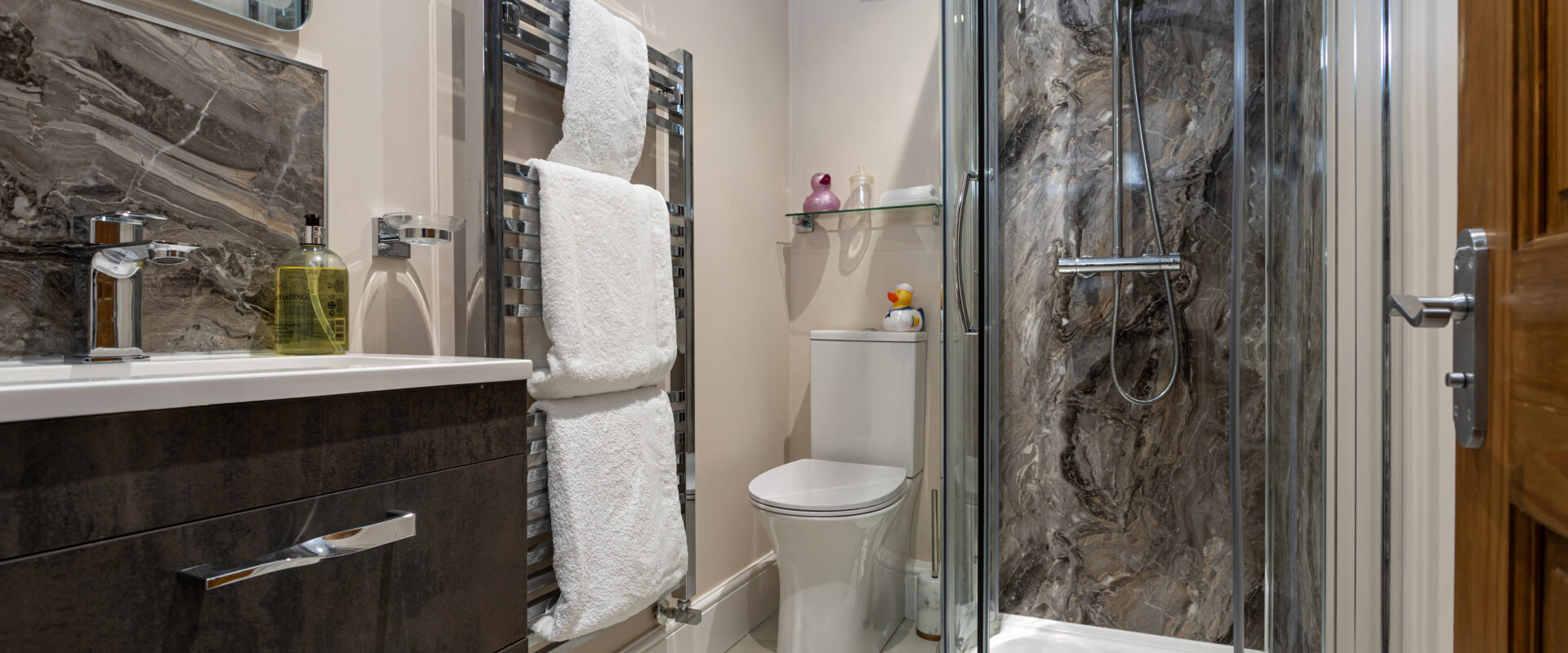 The cottage features two elegant double bedrooms with king -size beds, each with its own bathroom, rainfall showers and underfloor heating, offering both comfort and privacy. Additionally, there is a separate dressing room. The modern fitted kitchen is fully equipped and seamlessly flows into a character-rich dining room - perfect for enjoying laid-back meals. Unwind in the spacious lounge which boasts a Smart TV, a cosy log burning effect gas fire and triple bi-fold doors that fully open onto a private patio.