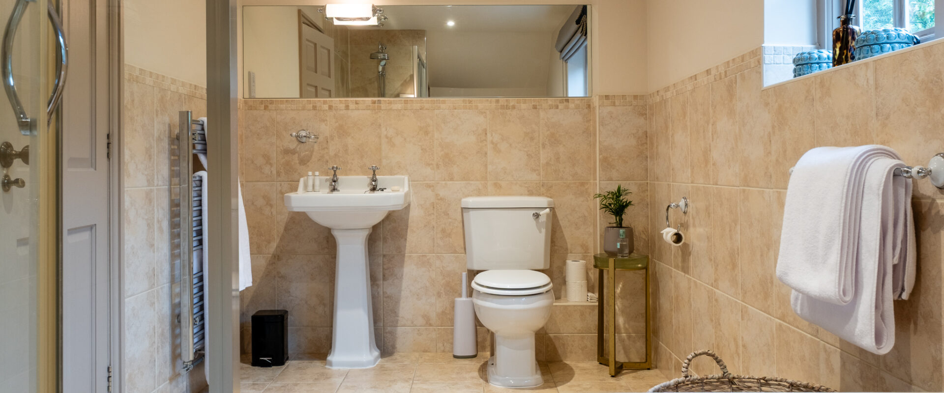 The first floor of Sandstone 34 offers two super-king bedrooms, plus a twin and one of the super-kings can split into two singles on request. A spacious family bathroom with both a bath and shower completes the upstairs layout, providing a practical and peaceful space to unwind after a day exploring the countryside.