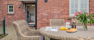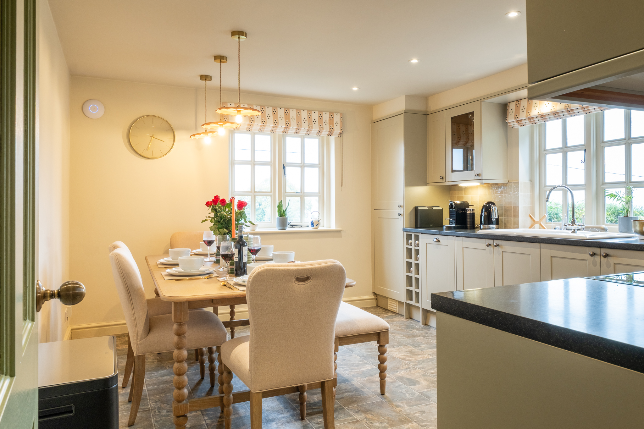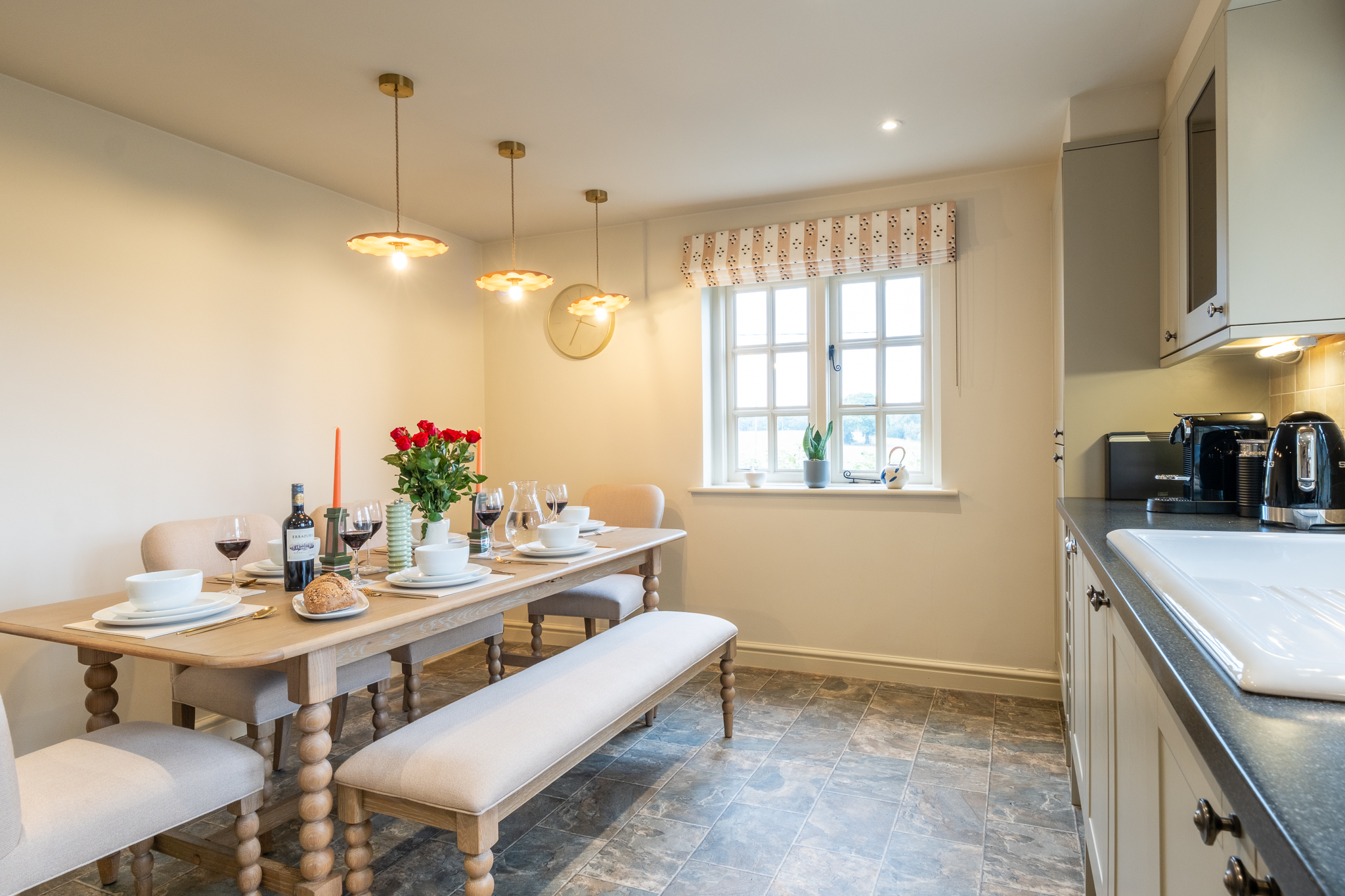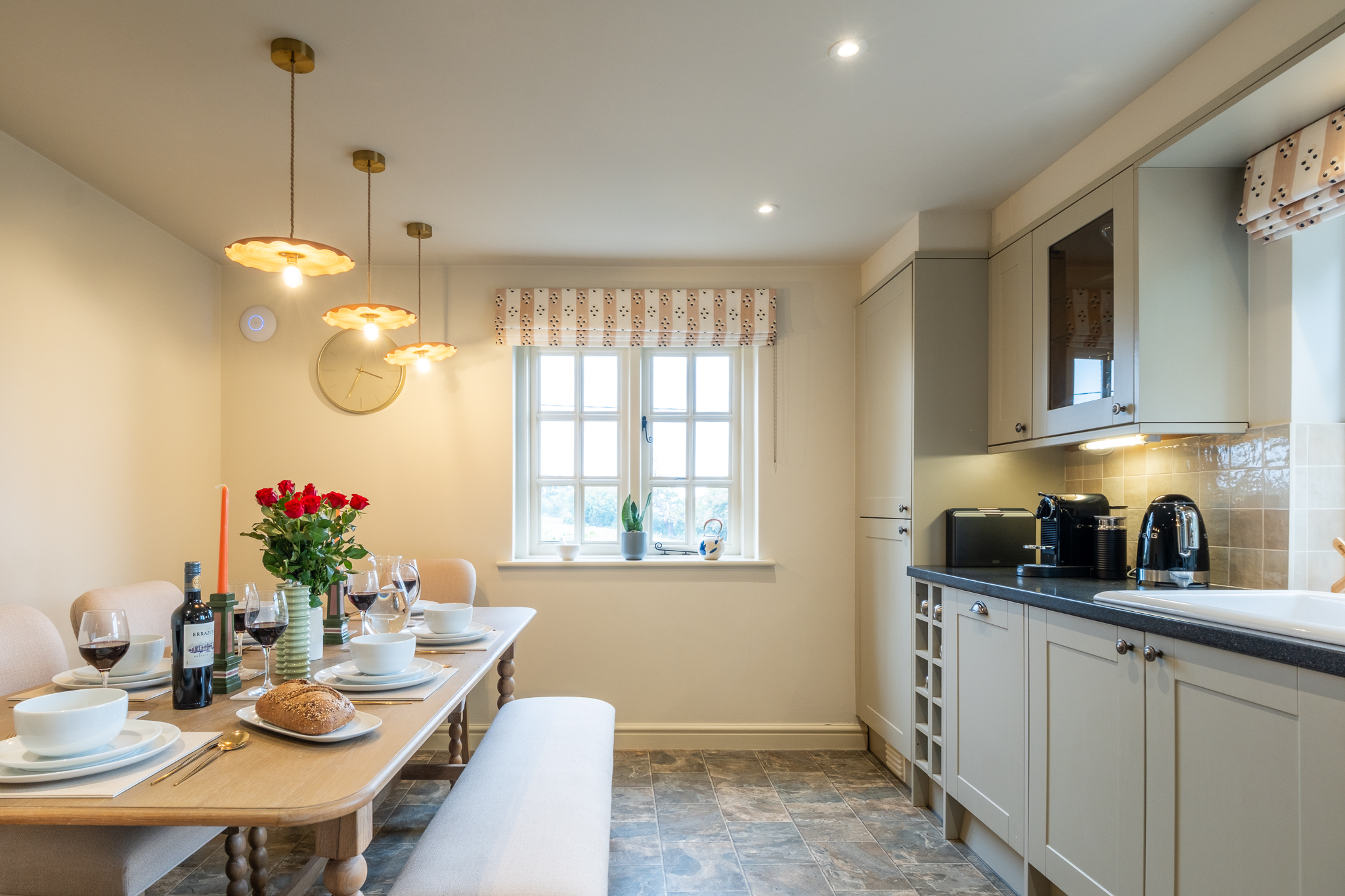 Thoughtfully designed for relaxed rural living, Sandstone sleeps up to six guests across two king-size bedrooms and one twin bedroom. The interiors blend rustic charm with modern comfort, creating a warm and welcoming space for families or small groups. The cottage features a spacious lounge with a log burner and smart TV, a well-equipped kitchen for home-cooked meals, and a bathroom with both bath and shower. The layout is ideal for socialising, whether you're returning from a long walk or enjoying a quiet evening in. Outside, guests can unwind in a fully secure garden with outdoor seating perfect for dogs and alfresco dining. Private parking is included, making arrival and exploration easy and stress-free.