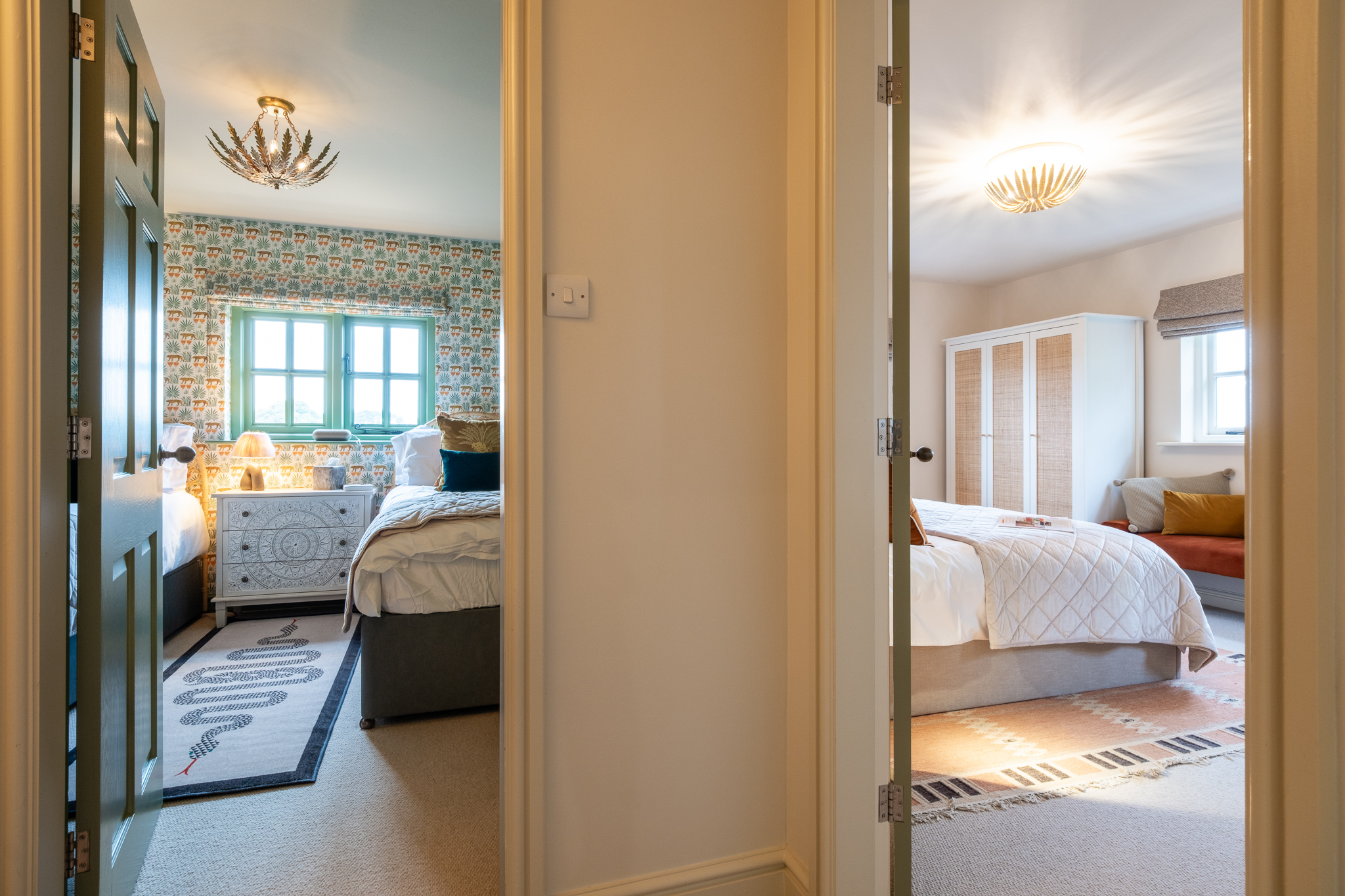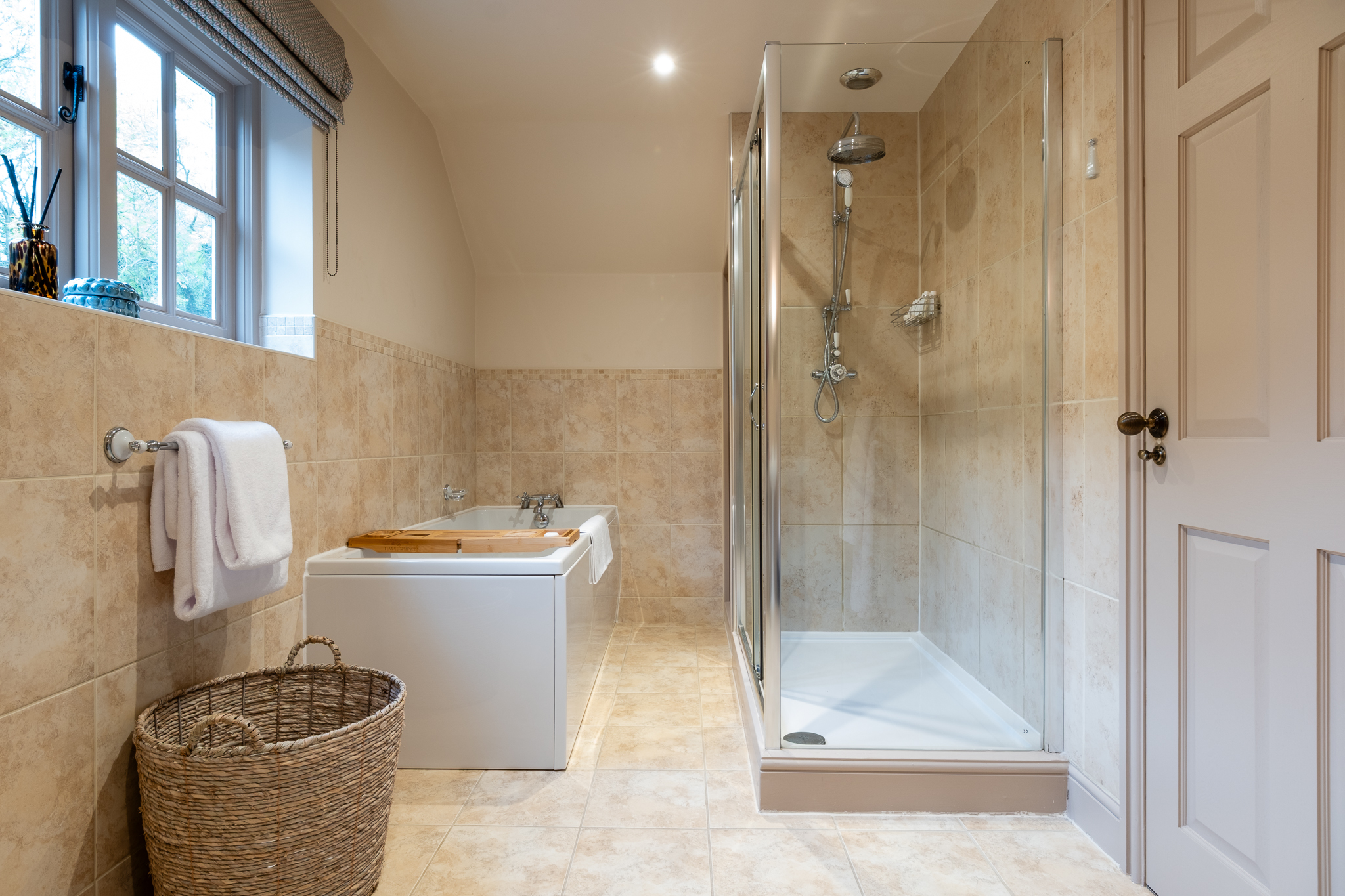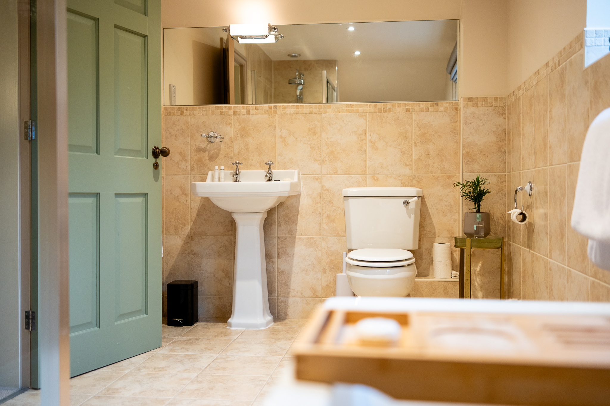 The first floor of Sandstone offers two king-size bedrooms and one twin bedroom, all thoughtfully furnished for comfort and relaxation. A spacious family bathroom with both a bath and shower completes the upstairs layout, providing a practical and peaceful space to unwind after a day exploring the countryside.
