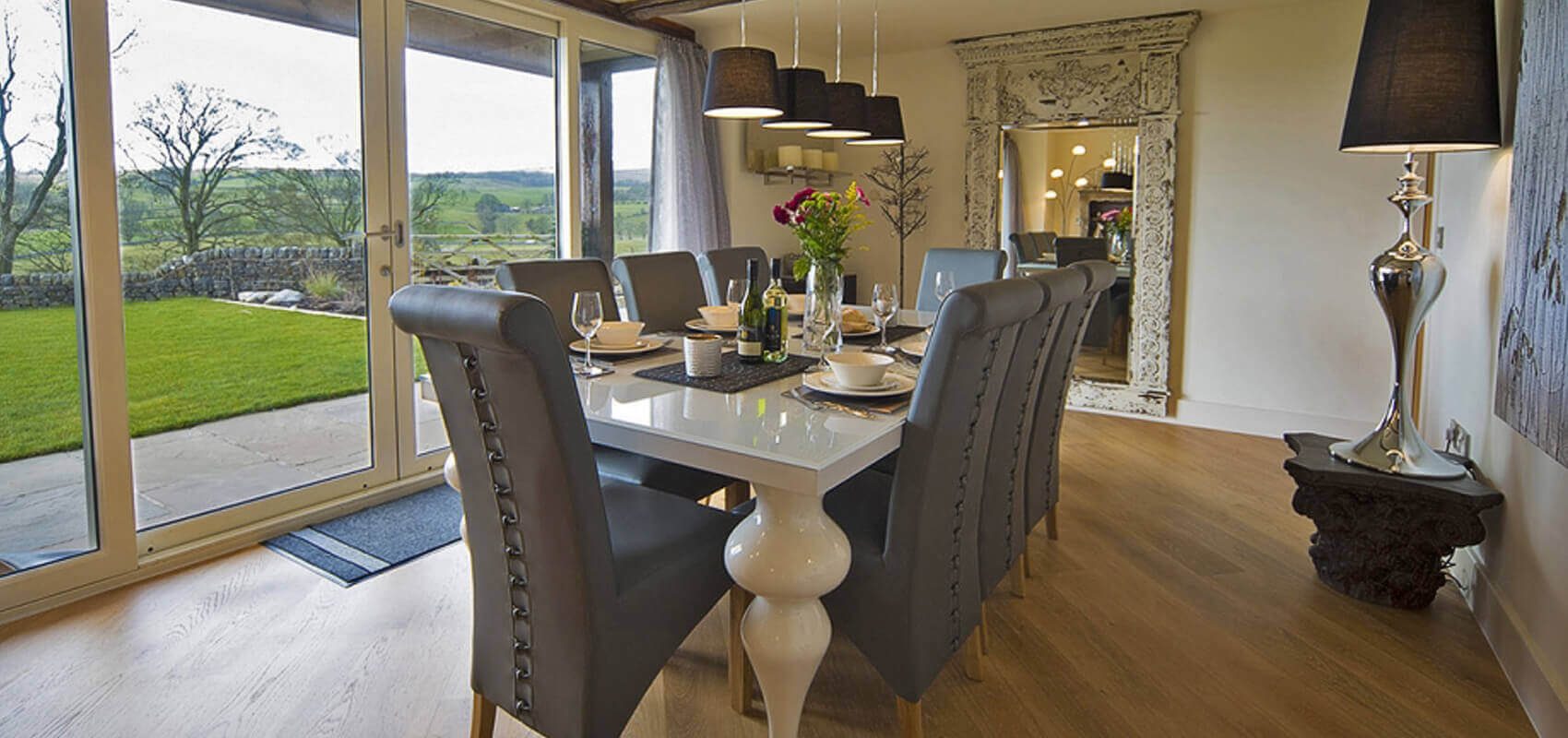 Flatt House Barn is a luxury, Five Star Gold holiday cottage in the heart of The Yorkshire Dales. The property is located in the tiny hamlet of Hanlith, 20 minutes from the quaint market town of Settle and is surrounded by spectacular countryside with wonderful walks directly from the door. The Pennine Way passes through Hanlith and the River Aire meanders through the valley, from its source at nearby Malham Cove. Converted to the highest and most luxurious of standards, Flatt House Barn provides welcoming and elegant accommodation for groups of friends or families. The property boasts a covered hot tub and a games room with TV, PS4 and drinks fridge. The landscaped gardens offer panoramic views over to Malham Cove and the Dales. There are two terraces and a BBQ area.