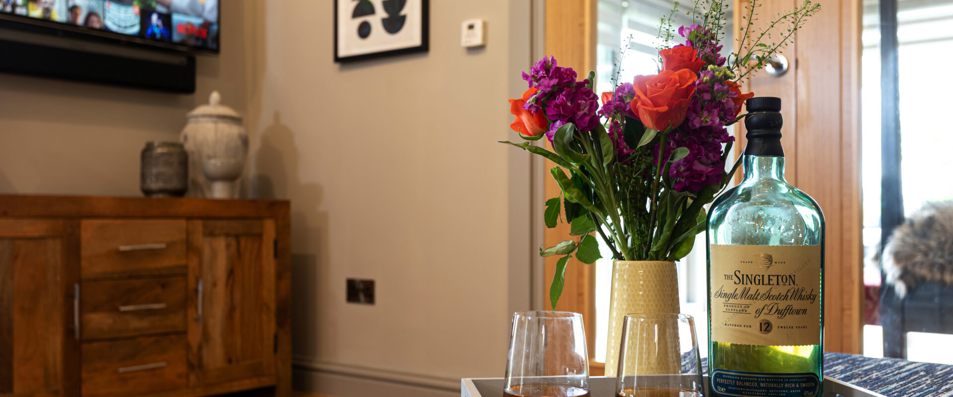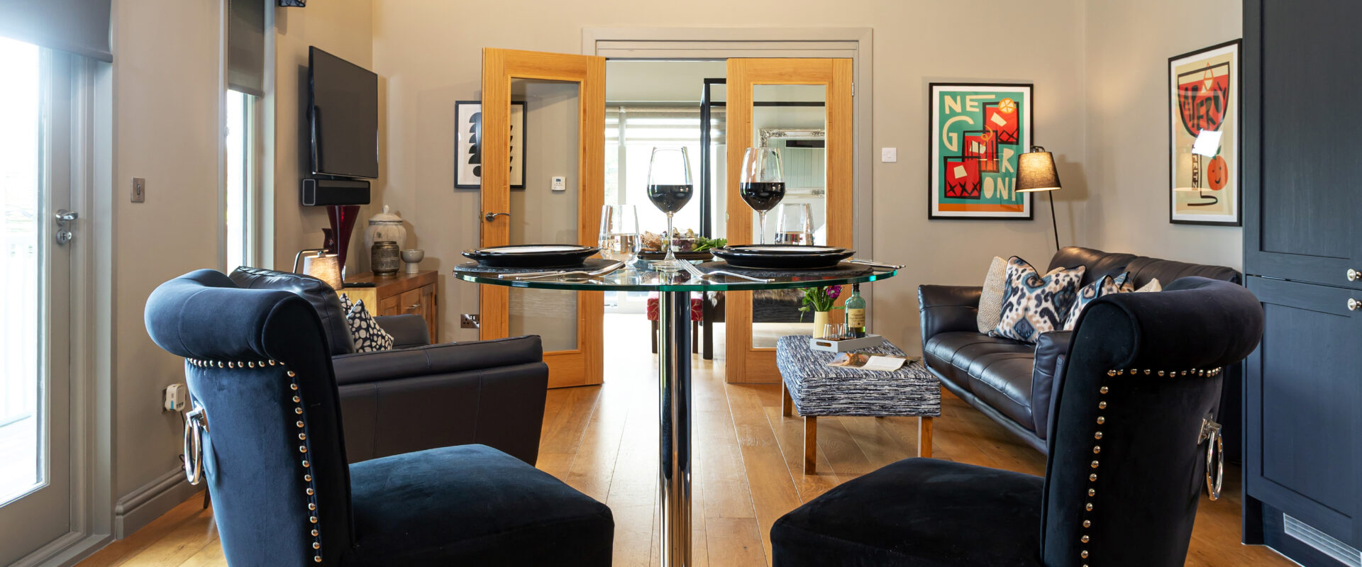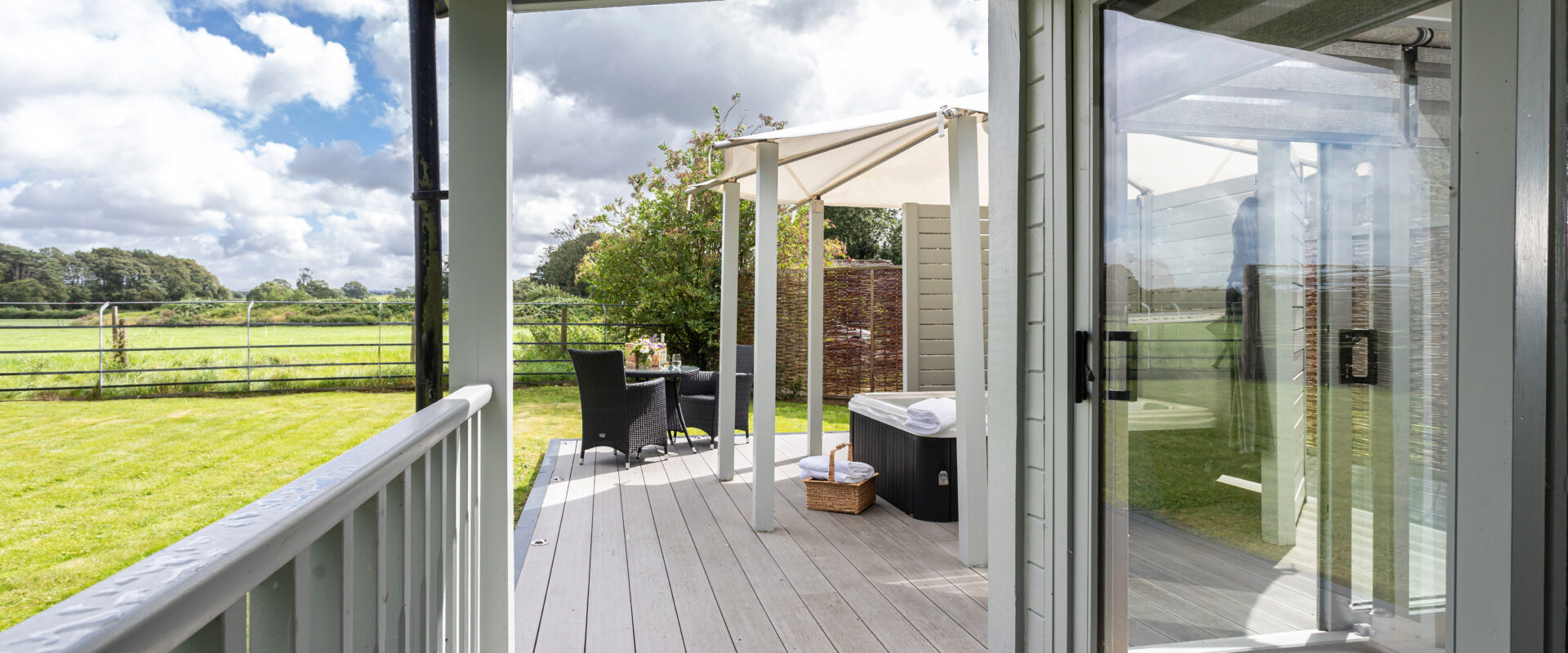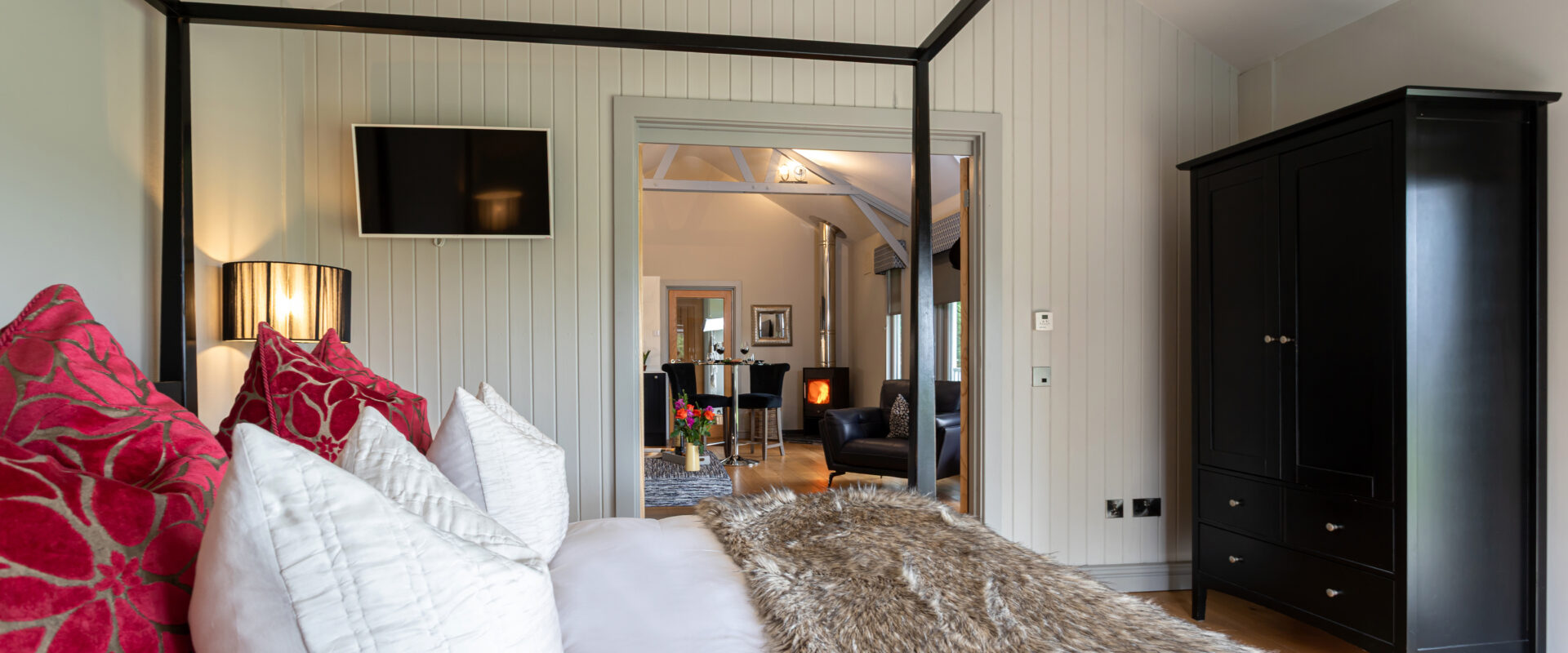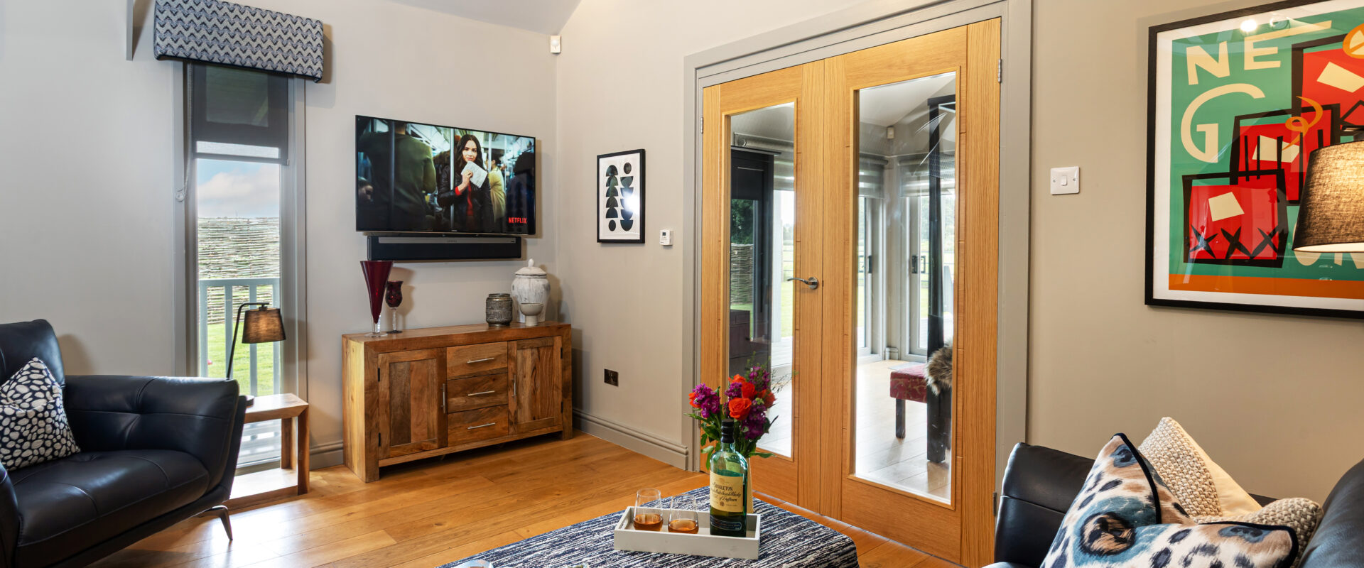 Stepping inside, you’ll be greeted by stylish, thoughtfully curated interiors that strike the perfect balance between comfort and elegance. The open-plan living space includes a fully equipped kitchen, dining area, and lounge, all designed to make you feel instantly at home. After a day exploring the surrounding countryside, sink into the hot tub under the stars or curl up by the fire with a glass of wine and your favourite show on the smart TV.
