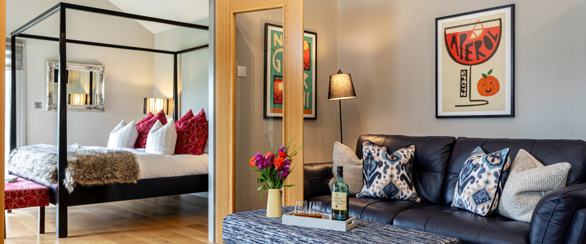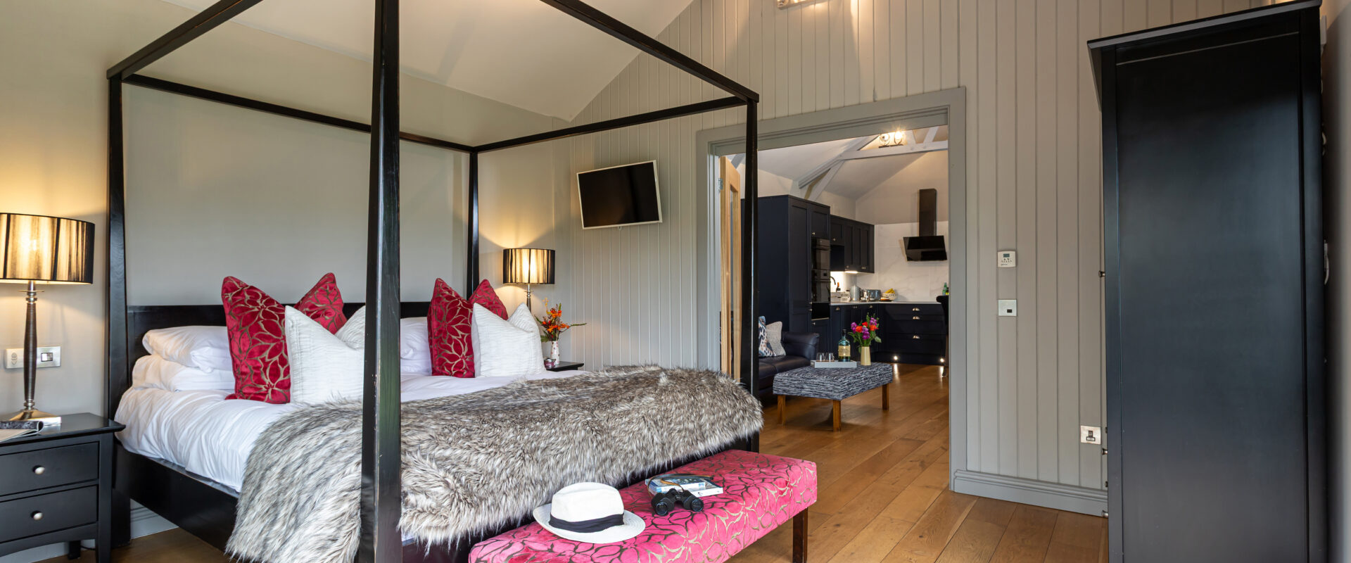 The Pavilion is all on one level, making it both accessible and inviting. The sleek, modern bathroom features a spacious walk-in shower and WC, while the bedroom offers a sumptuous four-poster bed with views stretching out towards the Yorkshire Dales. Wake up to the beauty of the landscape, then enjoy your morning coffee in the private garden, perhaps brewed with the Nespresso machine provided for your convenience.
